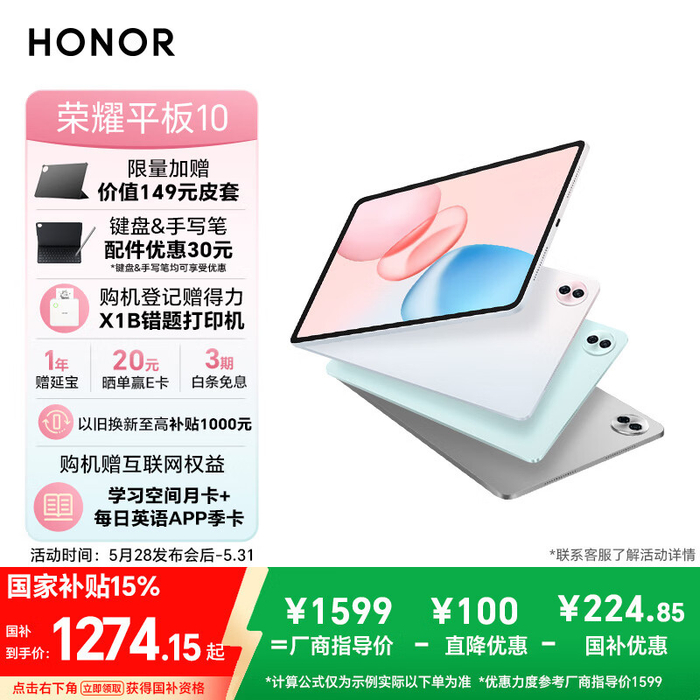 荣耀平板 10 开售:骁龙 7 Gen3 处理器,首发价 1499 元起(国补价 1274.15 元起)