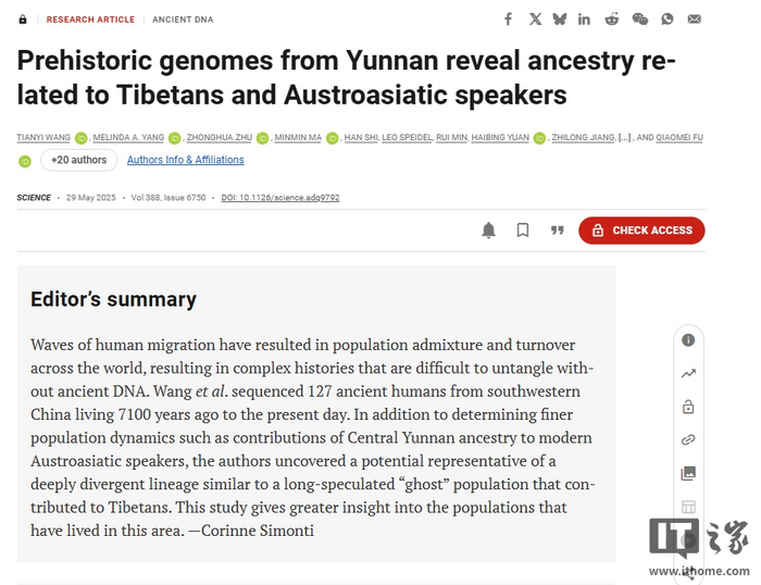 IT之家 5 月 31 日消息,青藏高原人群的遗传起源一直是学界关注的热点,其中“幽灵祖先”的存在长期以来缺乏直接来源的代表性人群。此外,南亚语系族群的起源和扩散模式也一直存在争议。最新研究为这两个问题提供了突破性答案。