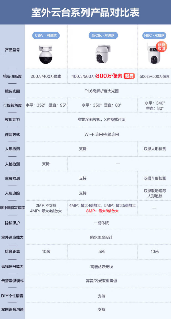 360° 全景视野看护:萤石室外摄像机 H9c 双摄全彩版 185 元国补新低