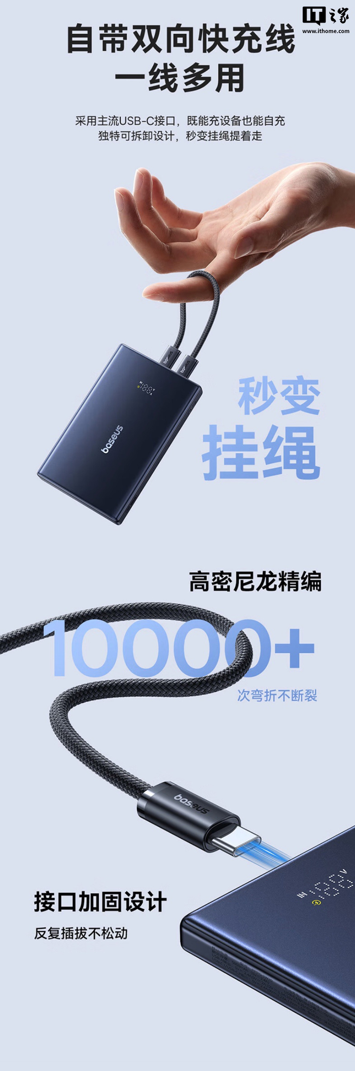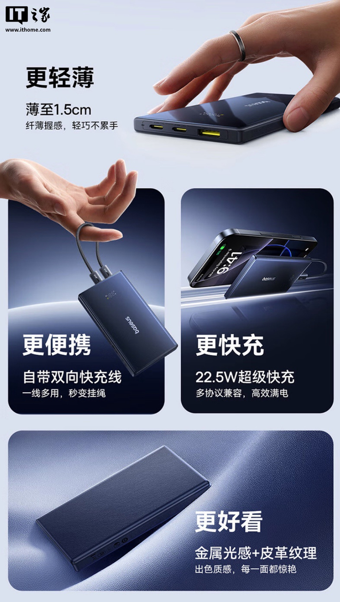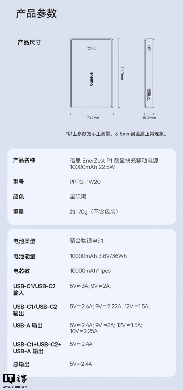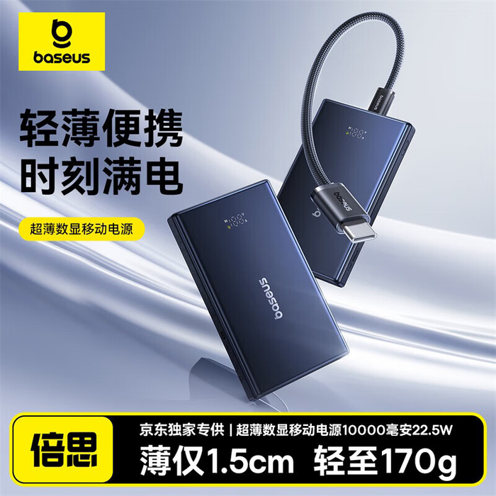 倍思推出 10000 毫安时 22.5W 数显移动电源,2C + 1A 售 107 元