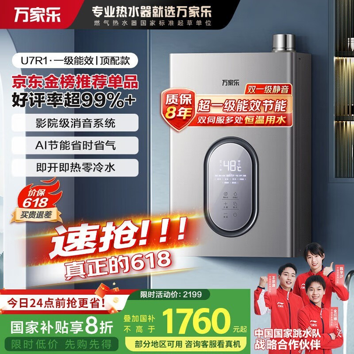 万家乐16升燃气热水器超一级能效节能双伺服恒温双增压零冷水