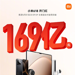 快科技6月1日消息,今天小米公布了618最新战报:截至5月31日23:59:59,全渠道支付金额突破169亿。