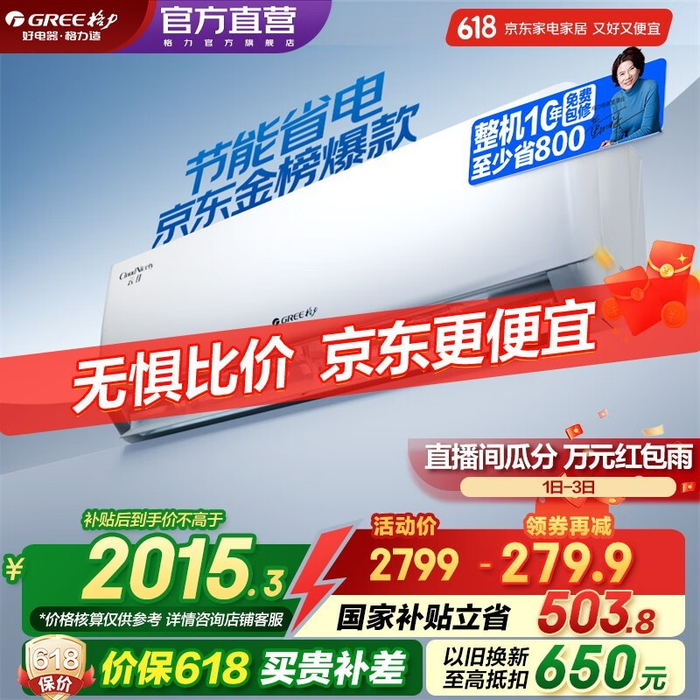 格力云佳系列空调大1.5匹新一级能效壁挂式促销
