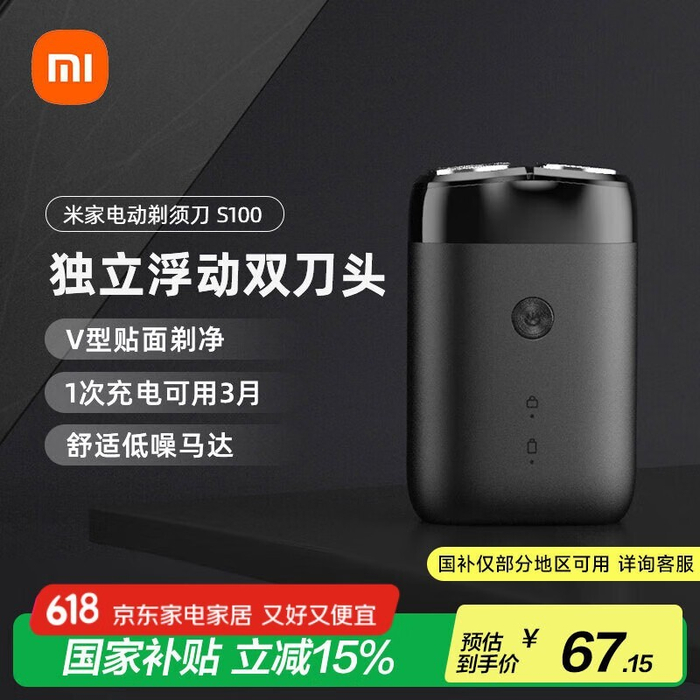 米家MIJIA S100电动剃须刀黑色款限时特惠41.18元