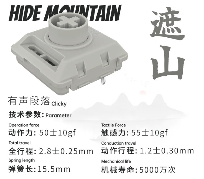 关于按键手感,八位堂使用的是国产轴体凯华特制的遮山矮轴,触发键程为1.1mm: