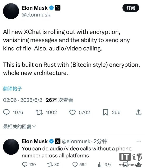 马斯克宣布推出全新 XChat:音视频、加密、消息自毁功能一应俱全