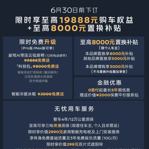 • 至高 8000 元置换补贴(限个人车主),本品牌置换享 8000 元补贴,其他品牌置换享 5000 元补贴,本品牌增购享 3000 元补贴(不与置换补贴叠加享受)。