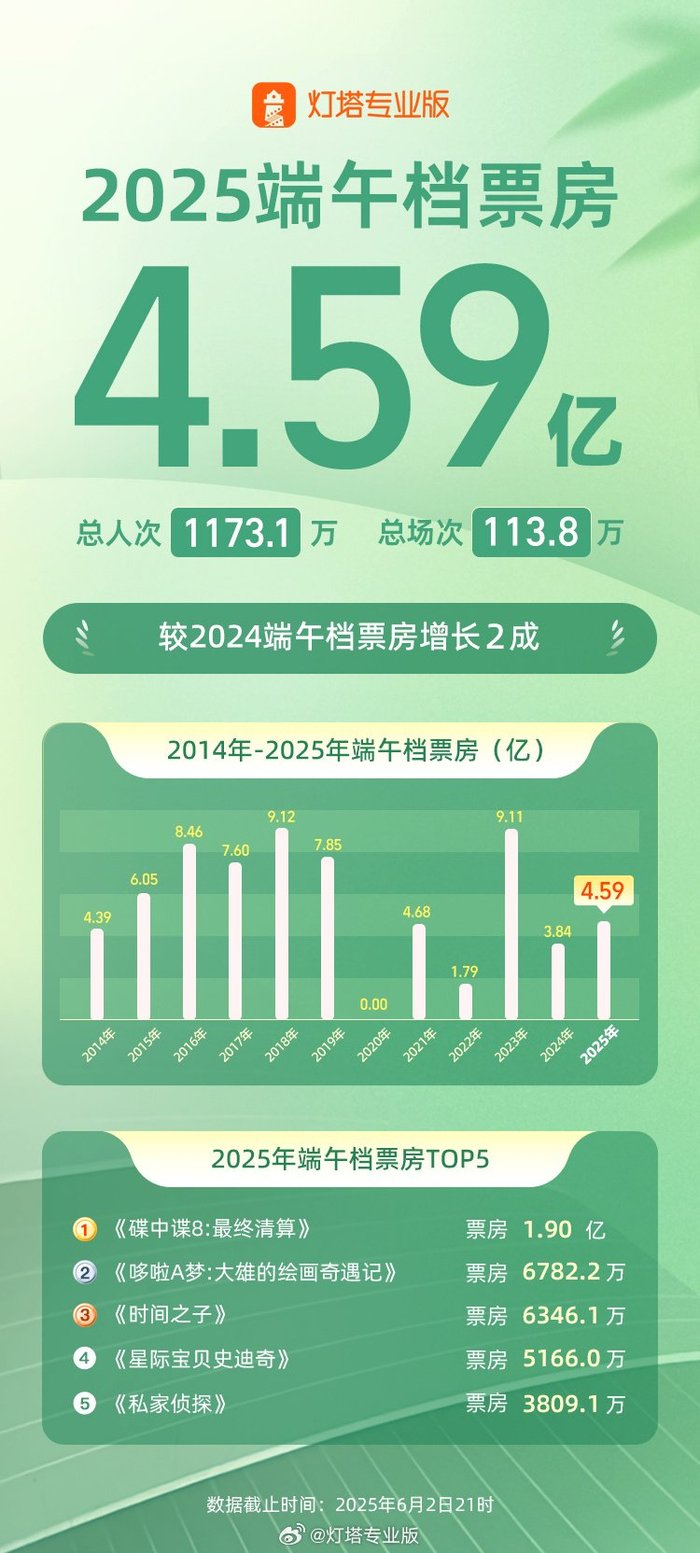 2025 端午档电影票房 4.59 亿,增长达两成