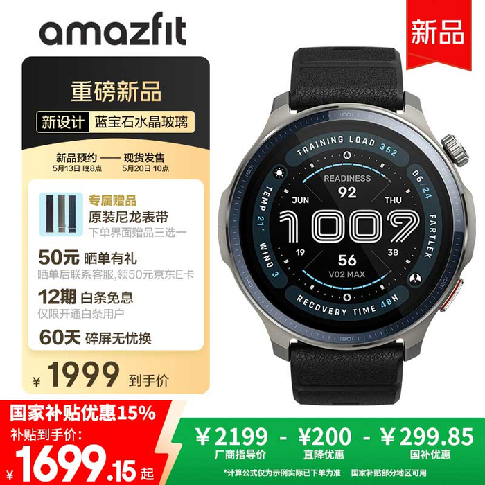 IT之家注:华为华米 Balance 2 智能手表主打“21 天续航、1.5 英寸大屏”,定价为 1969 元(国补后 1669.15 元)。