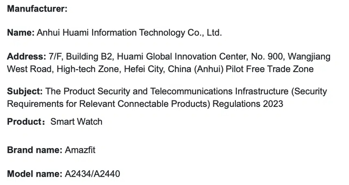 华米 Active 2 的方形版本近期在监管文件中浮出水面,型号为 A2434 和 A2440,明确标注“Active 2 Square”。