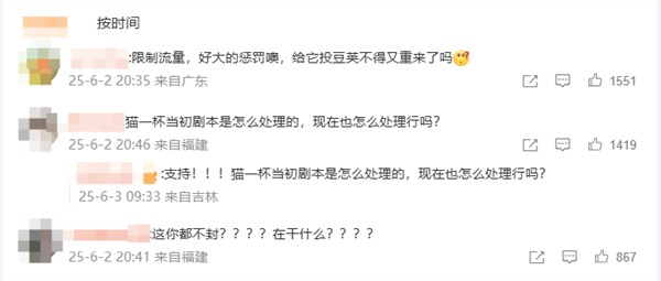 也有网友拿账号“赵星冉”与此前“猫一杯”剧本事件做对比,觉得官方应该做出同样的处理方式:全网封禁。