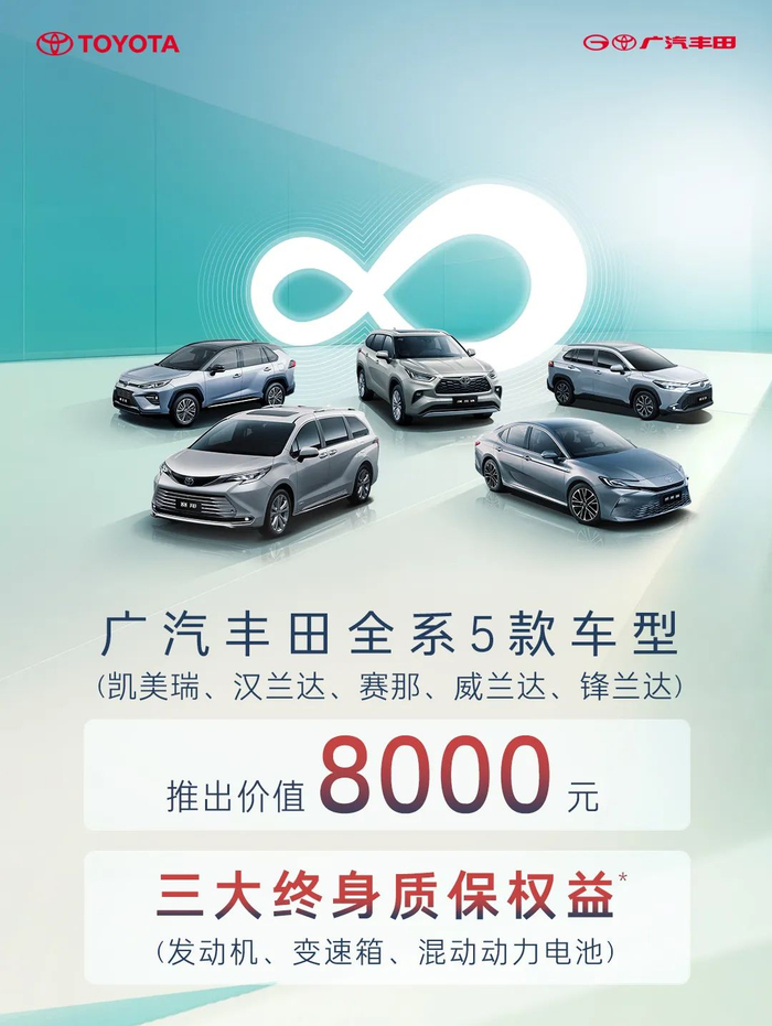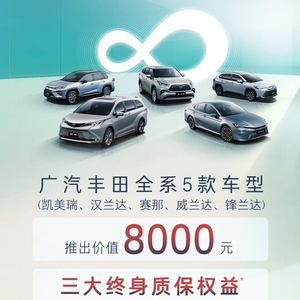 广汽丰田全系 5 款车推出终身质保权益:发动机、变速箱、混动动力电池