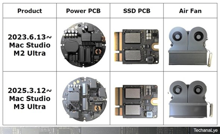 Mac Studio M2 Ultra与Mac Studio M3 Ultra的内部比较