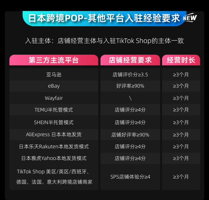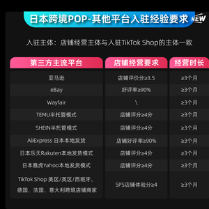 根据官方信息,商家入驻TikTok Shop日本跨境POP的标准包括: