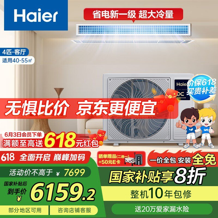 海尔中央空调云璟Plus风管机一拖一4匹大冷量1级变频客厅