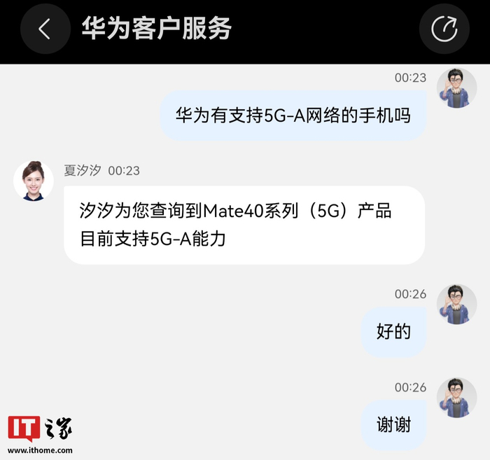 华为客户服务:Mate 40 系列(5G)产品目前支持 5G-A 能力