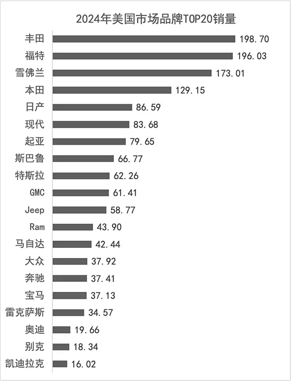如果咱们放眼国外,会发现雪佛兰其实混得不差,2024 年它在全美的销量是 173 万,位居第三,仅次于丰田、福特。
