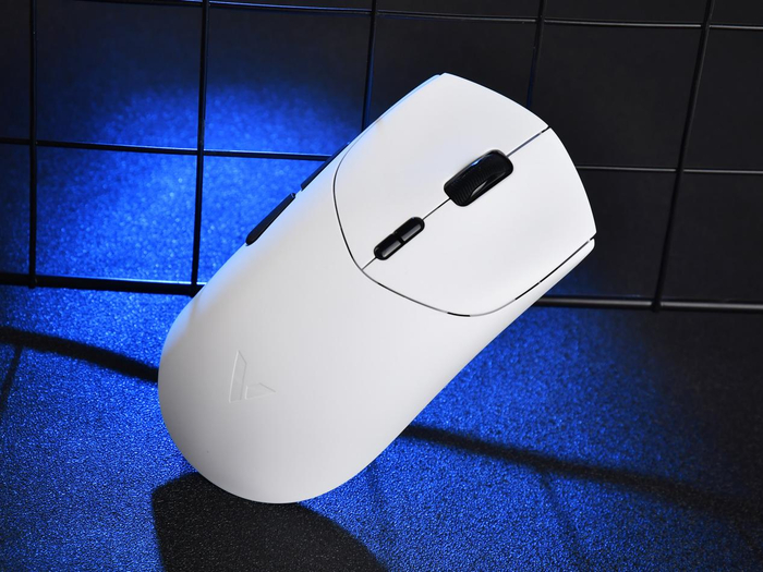 模具则为对称式右手鼠标设计,左右腰身收窄,幅度不大。鼠标背部高位在中线偏后,手感饱满,适合中大手型抓握/趴握,手型够大的话,指握也十分舒适。背部曲线在抓握和趴握时都能很好的贴合掌心,不会空握,也不会顶手,手感接近于更饱满一些的毒蝰,相信会是一款有许多人喜爱的精调模具。