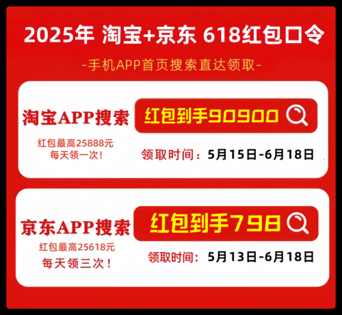 首先,划重点!2025年最新的京东618红包口令是「红包到手798」,天猫/淘宝618红包口令是「红包到手90900」记得每天去领,领的红包大小和你搜索的什么口令有关的!