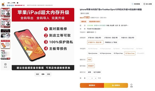 面对存储焦虑,部分用户将目光投向第三方扩容服务。但这种“捷径”暗藏巨大风险。首先非官方扩容会破坏手机的防水防尘密封结构,导致设备失去防护能力。其次苹果官方明确规定,私自改装存储芯片将失去保修资格。一旦因扩容引发主板故障,维修费用高达数千元。