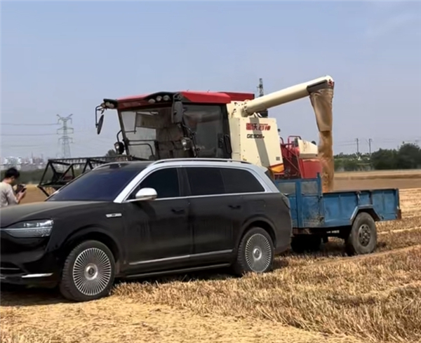 而日前,有自媒体博主另辟蹊径,把国内“科技车皇”问界M9开到了麦田,参与小麦的收割、运输环节。