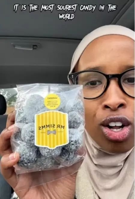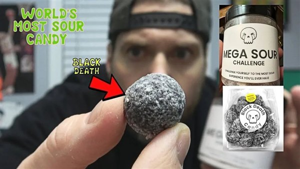 2023年,网络上就一直流行这种糖果挑战,英国的一位女博主就是参与者之一,为了庆祝自己的粉丝突破百万,她决定挑战黑色小糖果Black Death。