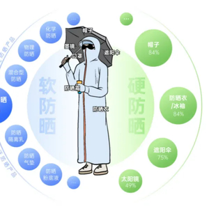 一是健康意识的提升。大众对防晒的重视程度增强,世界卫生组织将紫外线列为一类致癌物后,消费者对光老化和皮肤癌防护的关注度激增,网友戏称“养儿不一定防老,但防晒一定防老”。夏季防晒产品使用频率高,相较反复补涂的防晒霜,防晒服配产品等物理防晒方式防护力度更强、更为便捷,成为了防晒产品的首选。