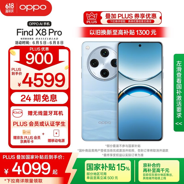 OPPO Find X8 Pro 12GB+512GB京东优惠价4071元