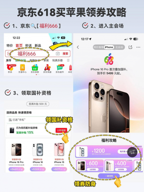 二、618买手机最佳时间 苹果手机购买时机 1. 5月31日开门红:iPhone 15系列直降800 - 1200元,叠加京东PLUS会员券还能再省400元。2. 6月9日手机品类日:京东会发放满4000减300元专属券,苹果以旧换新补贴最高加码至500元。3. 6月16 - 18日:iPhone 16系列预售尾款支付,叠加国家补贴后降价1500元,256GB版iPhone 16 Pro低至6999元 ,京东PLUS会员还可领满6000减600券,叠加苹果官方降价后iPhone 16能省2845元。