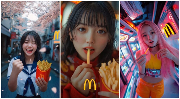 AI绘画作品被批成没有灵魂的“拼接尸块”,手指是五根起步的,肢体是扭曲的,像去年日本麦当劳用AI生成的薯条广告,就被网友吐槽“看了没食欲”“可怕”。