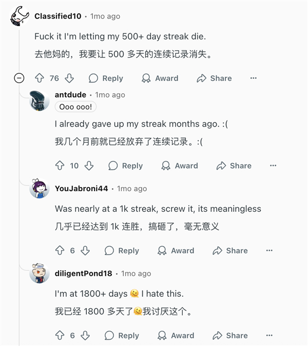多邻国各个平台官号的评论区底下全部沦陷,退订的退订,卸载的卸载,有人不惜断掉自己持续了将近两千天的打卡记录,也要踩上多邻国一脚,那架势跟男足退钱哥有得一拼。