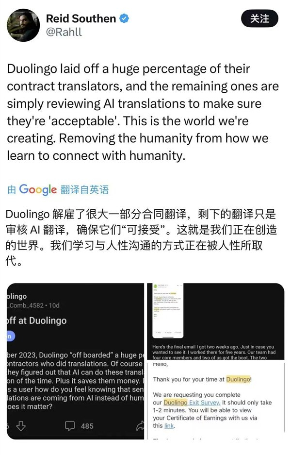 毕竟,多邻国去年裁了上千名外包翻译员工的事情,还历历在目,保不齐哪天,就又要拿员工开刀了。