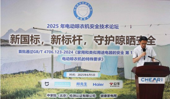 2025年6月5日下午,由中家院(北京)检测认证有限公司主办的“2025年电动晾衣机安全技术论坛”在北京举行,此次论坛采用线上和线下同步的方式进行。