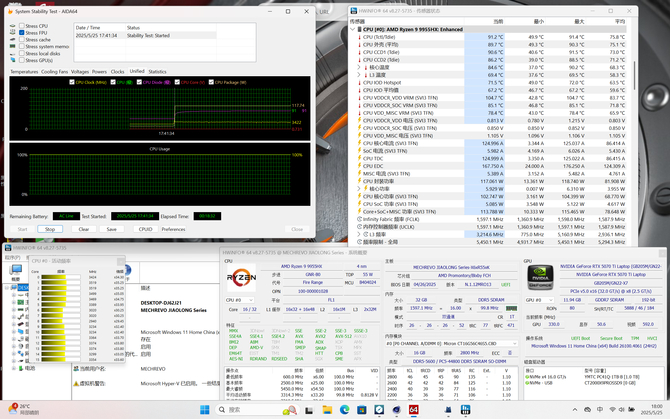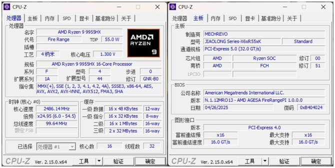 来看看AMD锐龙9 9955HX处理器在机械革命蛟龙16 Pro 2025笔记本上的具体表现。