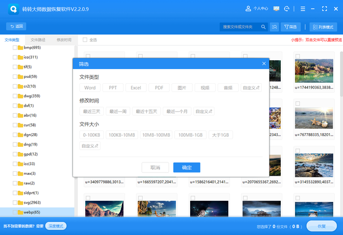 5.预览并恢复:找到文件后双击预览,确认无误勾选文件,点击恢复按钮,选择保存位置(不要保存到原文件所在位置以免覆盖数据),点击确定完成恢复。