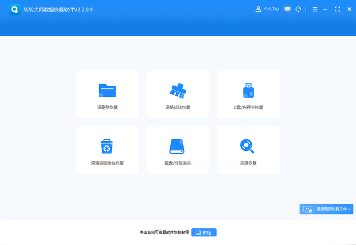 转转大师数据恢复软件是一款常用的硬盘数据恢复软件,操作流程如下: