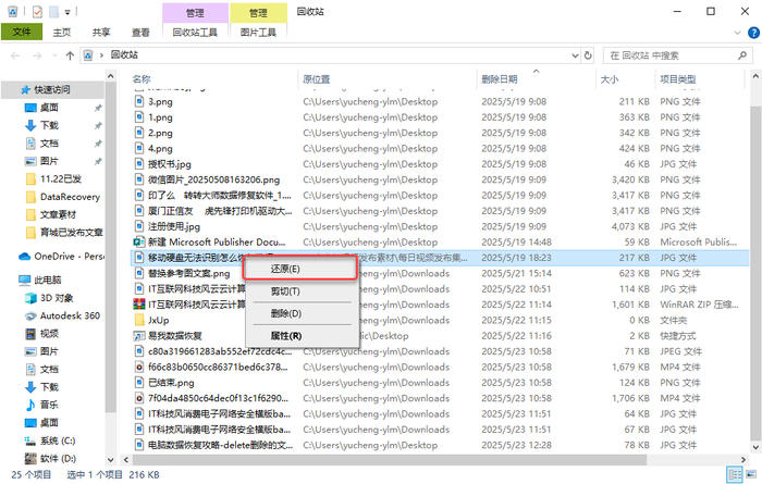 误删文件后未清空回收站时,直接进入回收站还原文件