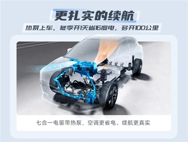 官方实测显示,采用热泵空调的AION Y Plus,开一天能比普通空调要省16度电,相当于能多跑100km。