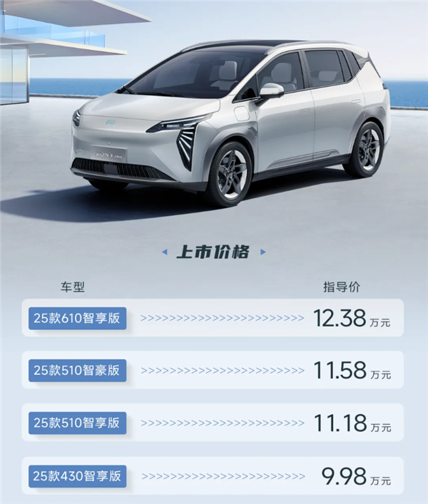 2025款AION Y Plus已于近日上市,作为一款A级纯电SUV,AION Y Plus的起售价只有9.98万元,叠加置换/报废国补后,价格还能下探万元以上,价格极具诚意。