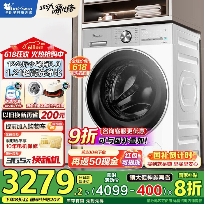 小天鹅小乌梅3.0 TD12VE10PRO洗衣机超值价仅一天