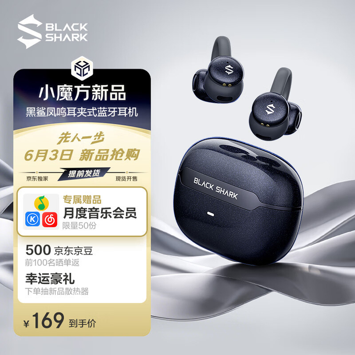 IT之家 6 月 7 日消息,黑鲨凤鸣耳夹式蓝牙耳机现已在京东开启首销,官方定价 169 元,前 100 名晒单返 500 京豆。
