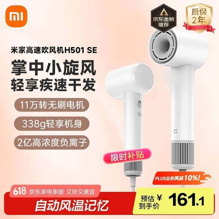 小米米家H501 SE电吹风限时特惠,高颜值高性能低价到手