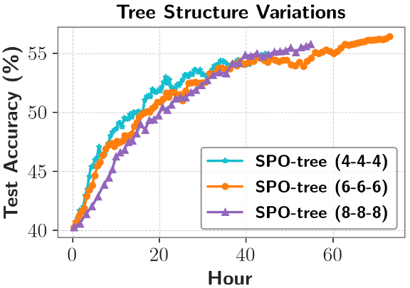 实验表明,更小的树结构在早期正确率更高,可能因为更快扫过更多的数据样本。然而随着训练的进行,更大的树结构会有更好的正确率,因为更大的树结构对于段级优势值的估计更加准确。