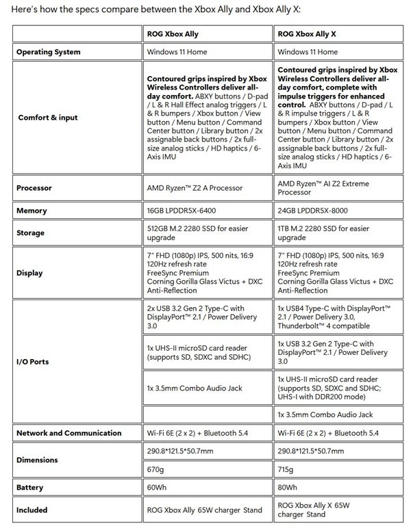 Xbox Ally的 Z2 A则基于Steam Deck的梵高芯片,电池容量60瓦时。这两款设备将于今年第四季面市,定价尚待公布。