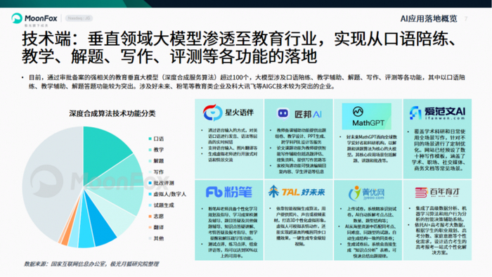 技术端:垂直领域大模型渗透至教育行业,实现从口语陪练、教学、解题、写作、评测等各功能的落地
