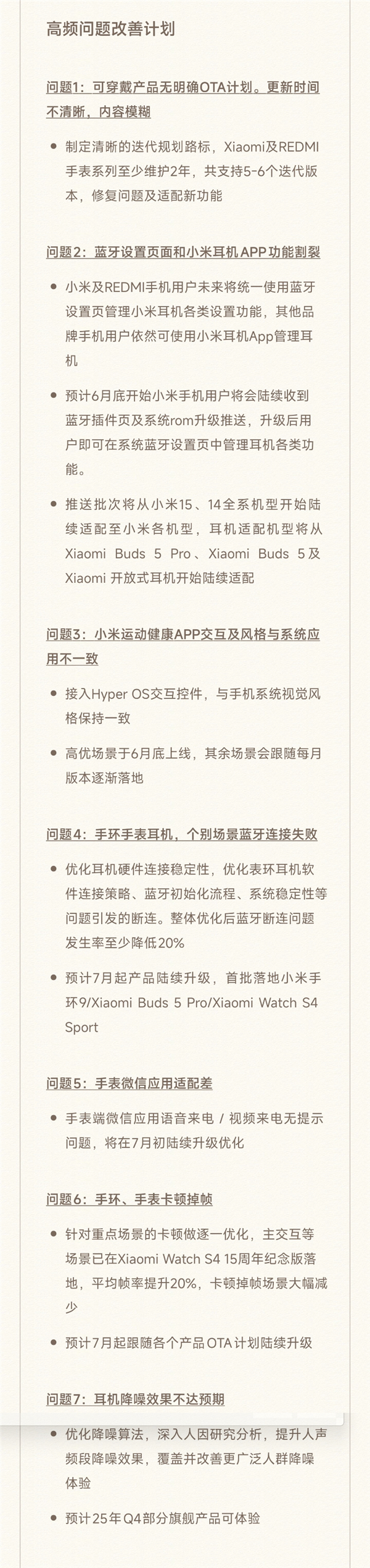 同时他还公布了近期整改计划,其中小米耳机使用割裂的问题终于将得到解决。
