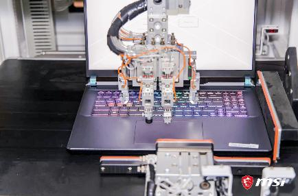 接下来是笔记本主板PCBA环节,作为笔记本数百个零件的核心环节,微星笔记本PCBA已经实现了高度的自动化和智能化。2019年还需要四五十人力的产线,从激光雕刻、PCB印刷锡膏、SMT贴片、DIP插件、辅料贴敷、热压焊接、点胶到焊接以及托盘自动回流、激光切割等等复杂流程,如今已经精简到7个人就运行操作。而相比传统的人工产线,更多经过不断优化调试的机械加入取代,良品率和生产效率也都实现大幅提升!