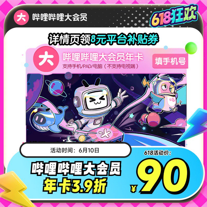 89 元大会员适用平台:B站大会员支持手机 / 平板 / 电脑使用,不支持电视端使用。