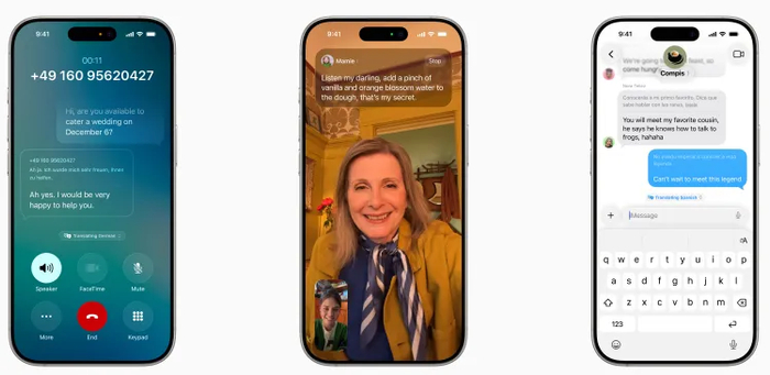 苹果还首次将 Apple Intelligence 加入推出实时翻译功能中,让你能够在信息、FaceTime 和电话通话中进行急于大模型识别的自动语言翻译。