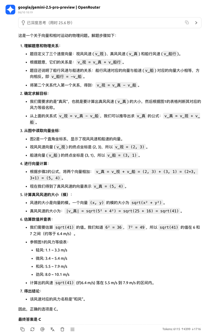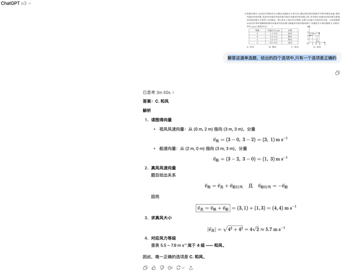 相比之下,Doubao 和 o3 至少正确识别了坐标位置,只是误判了视风风速方向,而 Gemini 连基本坐标都未能正确识别。